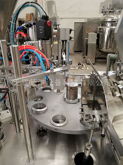 50全自動復合管灌裝封尾機采用全不銹鋼制作,工作過程采用按扭控制;人工上管,8工位自動回轉,定量灌裝、自動切斷、加熱封尾、切尾、成品退出。所有工作采用高精度氣缸全行程,灌裝量調節方便,灌裝速度可調。該機實用于各種規格復合軟管的灌裝、封尾、日期打印、切尾。封尾外形美觀整齊,封合牢固,計量精度高,穩定性好。根據物料不同可選配:料斗加溫系統、防拉絲灌裝頭。