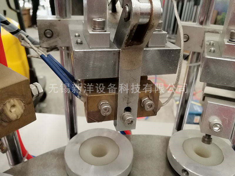 2、軟管試封,因軟管規格不同,使用不同模具加以配套,安裝完整模具座后,要調整高度,使管口達到封尾高度。開啟加熱開關,設定內加熱和外加熱兩溫度,通電以后電流表有指示,溫度應逐步迭加,達到理想的封口溫度。(通常情況內加熱設定250度,外加熱設定210度),等待溫度上升到設定值后即可灌裝。