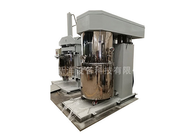 行星分散攪拌機有高速、低速、活動刮板作攪拌、剪切、刮壁、溶解用。低速運轉的攪拌錨使物料在密閉容器內上下翻動、剪切和混合,高速運轉的齒形分散盤與混合的物料產生強烈的碰擊和剪切,隨著攪拌錨的旋轉,行星架上的活動刮刀隨著旋轉,把釜體上的物料完全刮掉,使聚集物完全、徹底地達到混合、分散、溶解的要求。在其高低速的不同作用下,使物料能夠達到均勻的混合和分散。